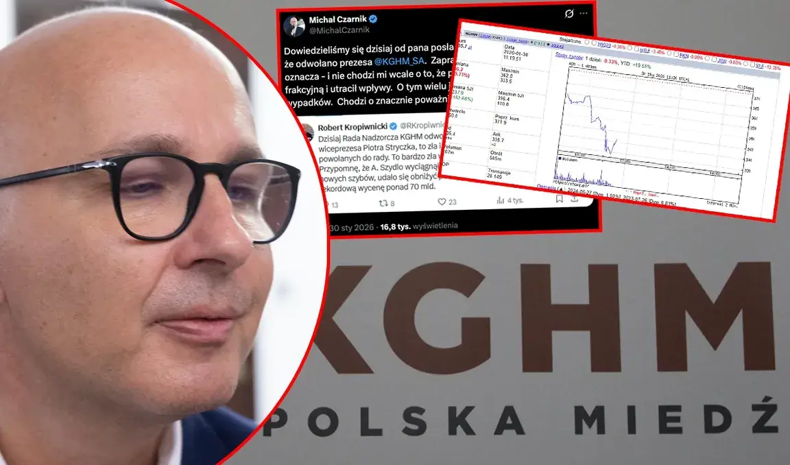 Po informacjach w mediach wywołanych wpisem posła Kropiwnickiego KGHM potwierdza zmiany, akcje w dół po wcześniejszym wzroście.