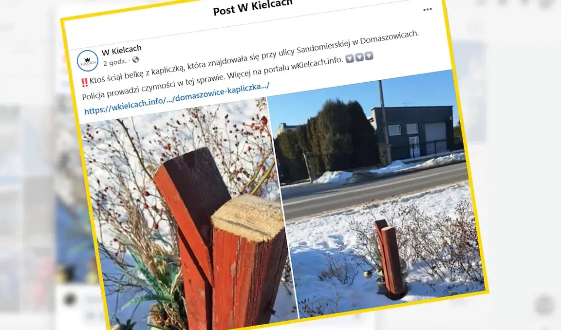 Ten smutny incydent nie jest odosobniony. W gminie Górno w sercu Gór Świętokrzyskich inny akt wandalizmu wstrząsnął lokalną społecznością – nocą nieznany kierowca wjechał w przydrożną kapliczkę Jezusa Miłosiernego, niszcząc ją i odjeżdżając z miejsca zdarzenia.