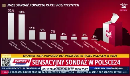 KO prowadzi, PiS tuż za nim. Nowy sondaż dla wPolsce24 wskazuje na zaciętą walkę