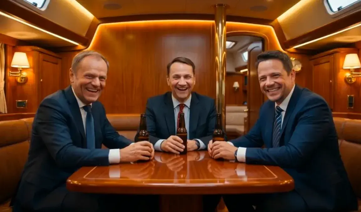 W spocie lidera Konfederacji widzimy symboliczną, mocno przerysowaną scenę. Zardzewiały statek z logo PiS walczy ze sztormem, a na jego pokładzie trwa chaos. O ster walczą Mateusz Morawiecki i Przemysław Czarnek, a w tym samym czasie, w zupełnie innym nastroju, Jacek Kurski bierze udział w balu na pokładzie – mimo że wokół szaleje burza, a statek wyraźnie tonie.