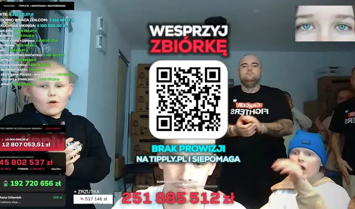 Rekordowa zbiórka ruszyła 17 kwietnia, pierwotnie z celem 500 tys. zł. Ten udało się osiągnąć błyskawicznie, a do finału licznik przekroczył 251 mln zł, dzięki masowym wpłatom od setek tysięcy Polaków i wsparciu wielu firm.