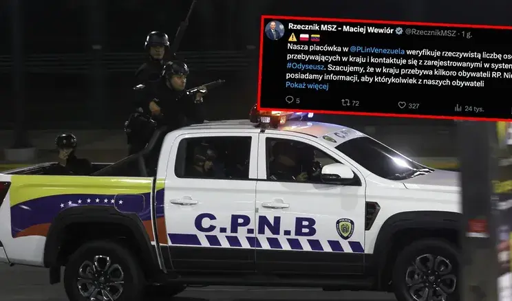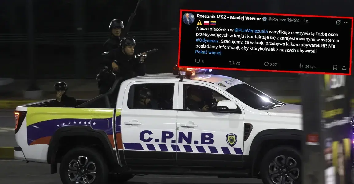 - Nasza placówka w Wenezueli weryfikuje rzeczywistą liczbę osób przebywających w kraju i kontaktuje się z zarejestrowanymi w systemie Odyseusz. Szacujemy, że w kraju przebywa kilkoro obywateli RP. Nie posiadamy informacji, aby którykolwiek z naszych obywateli potrzebował pomocy. Większość Polaków przebywa w Wenezueli długoterminowo. Placówka i jej personel są bezpieczni. Po podniesieniu 24.11.2025 r. przez MSZ poziomu ostrzeżeń biuro podróży organizujące wyjazdy na wyspę Margarita zawiesiło te wyjazdy. Na początku grudnia przy pomocy RBC wysłaliśmy także alert bezpieczeństwa na polskie numery zalogowane w sieci w Wenezueli. Apelujemy o pozostawanie w bezpiecznych miejscach i unikanie niepotrzebnego ryzyka. Obywateli RP niezarejestrowanych w systemie Odyseusz prosimy o kontakt z placówką: +58 412 262 21 65, [email protected] poinformował rzecznik MSZ Maciej Wiewiór.