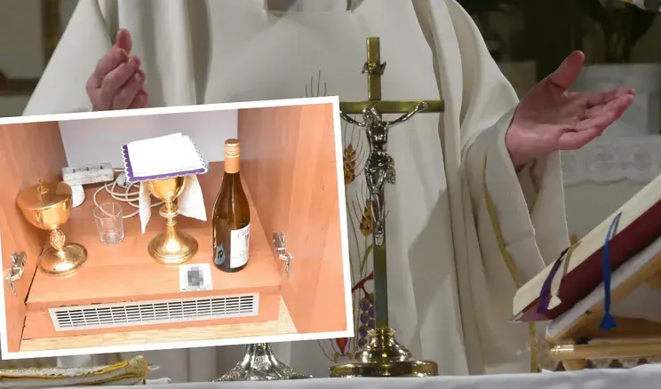 Po wejściu do wnętrza mężczyzna zachował się w sposób co najmniej osobliwy. Zabrał butelkę wina mszalnego, wyszedł na zewnątrz i natychmiast skonsumował jej zawartość, siedząc na pobliskiej ławce.