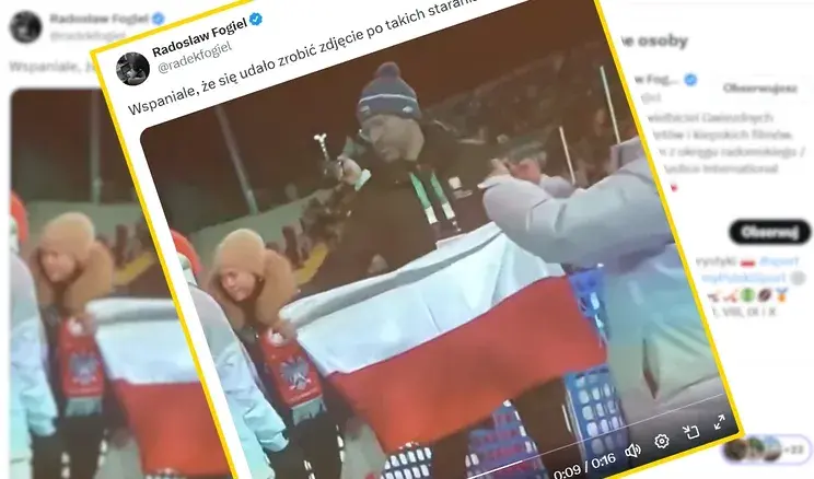 To jednak nie koniec wpadek. Na portalu x.com pojawiło się bowiem nagranie, jak polityk próbował znaleźć się w jednym kadrze ze skoczkiem.