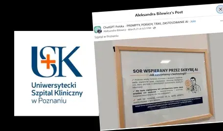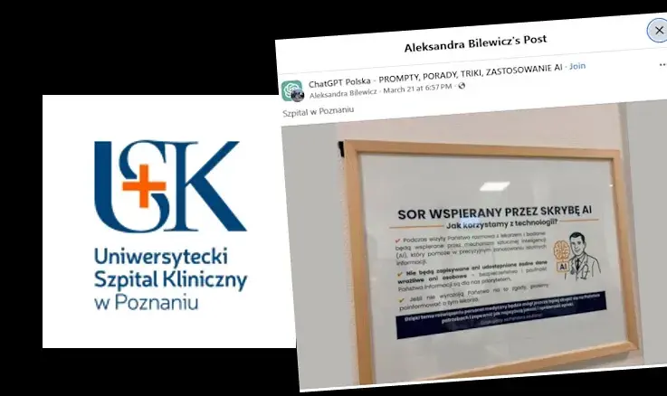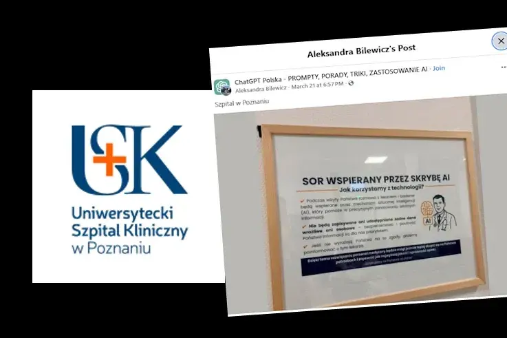 W Uniwersyteckim Szpitalu Klinicznym w Poznaniu pojawiła się tabliczka, która zaskoczyła pacjentów. Wynika z niej jasno: podczas wizyty na SOR pomagać będzie… „skryba AI”.